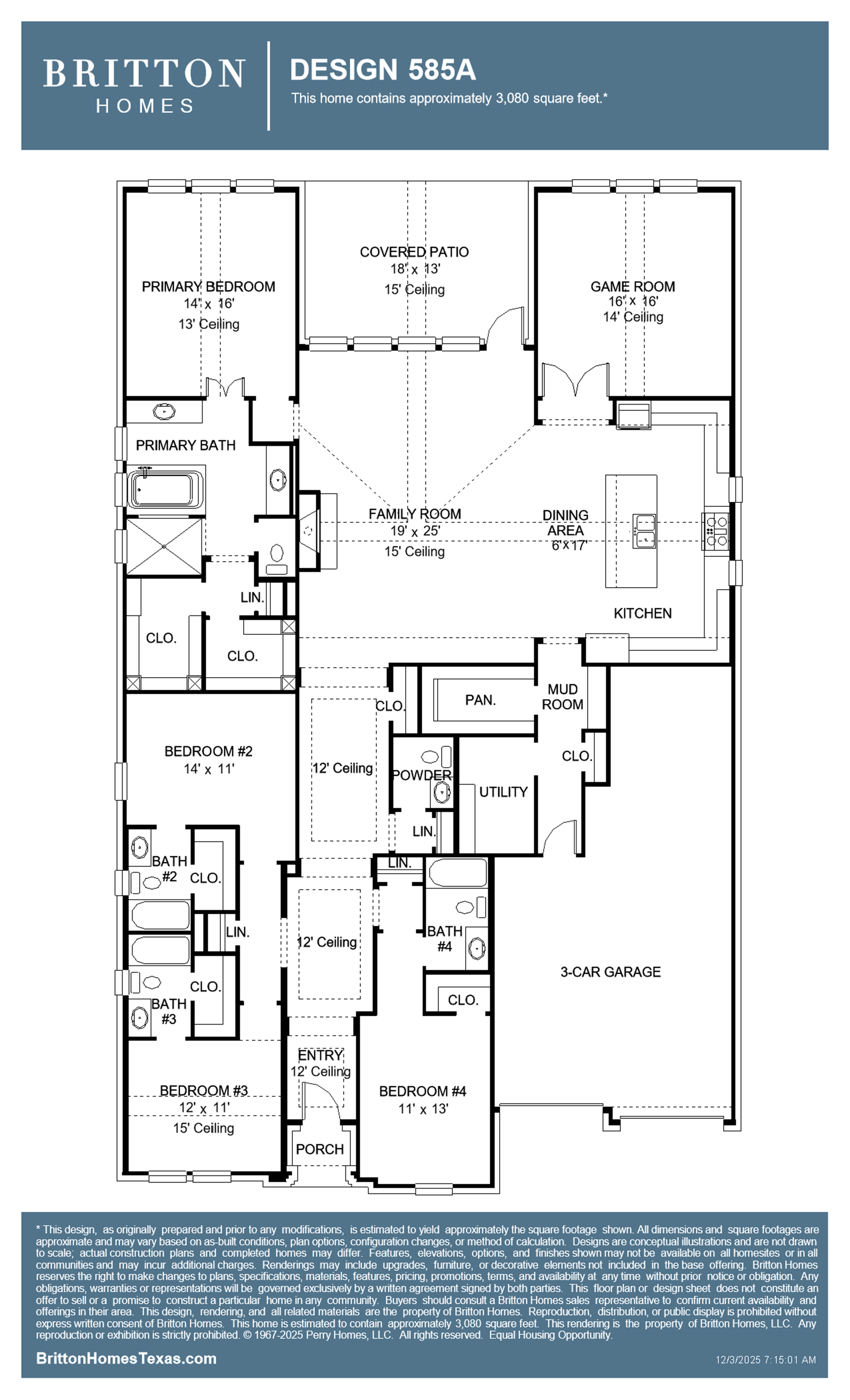 Builder reserves the right to make changes in the designs and specifications, and to substitute material of similar quality. Prices, terms, promotions, plans, dimensions, features, options, amenities, elevations, designs, square footages, specifications, materials and availability of homes or communities are subject to change without notice or obligation. All obligations will be governed by a written contract. This website does not constitute a commitment to build a particular design or home in any given community. Some designs, options, and/ or elevations may not be available on certain homesites or in a particular community and may require additional charges. Please check with Perry Homes to verify current offerings in the communities you are considering.