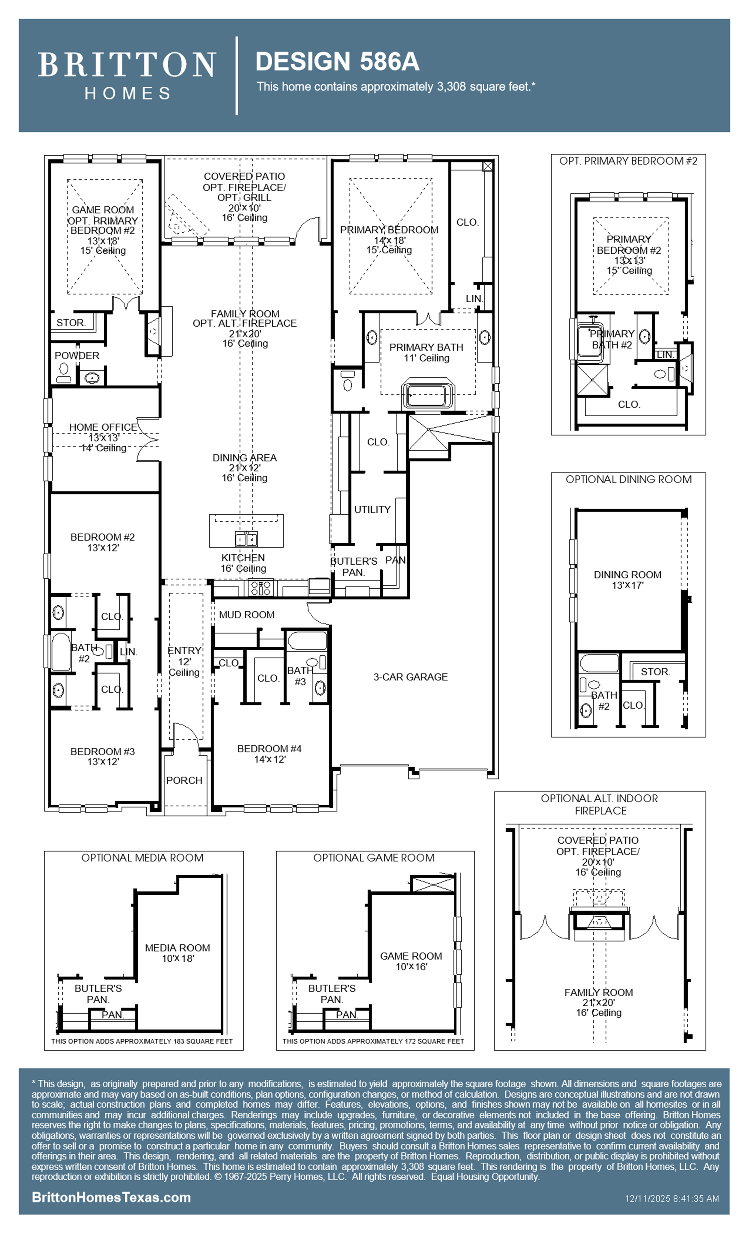 Builder reserves the right to make changes in the designs and specifications, and to substitute material of similar quality. Prices, terms, promotions, plans, dimensions, features, options, amenities, elevations, designs, square footages, specifications, materials and availability of homes or communities are subject to change without notice or obligation. All obligations will be governed by a written contract. This website does not constitute a commitment to build a particular design or home in any given community. Some designs, options, and/ or elevations may not be available on certain homesites or in a particular community and may require additional charges. Please check with Perry Homes to verify current offerings in the communities you are considering.