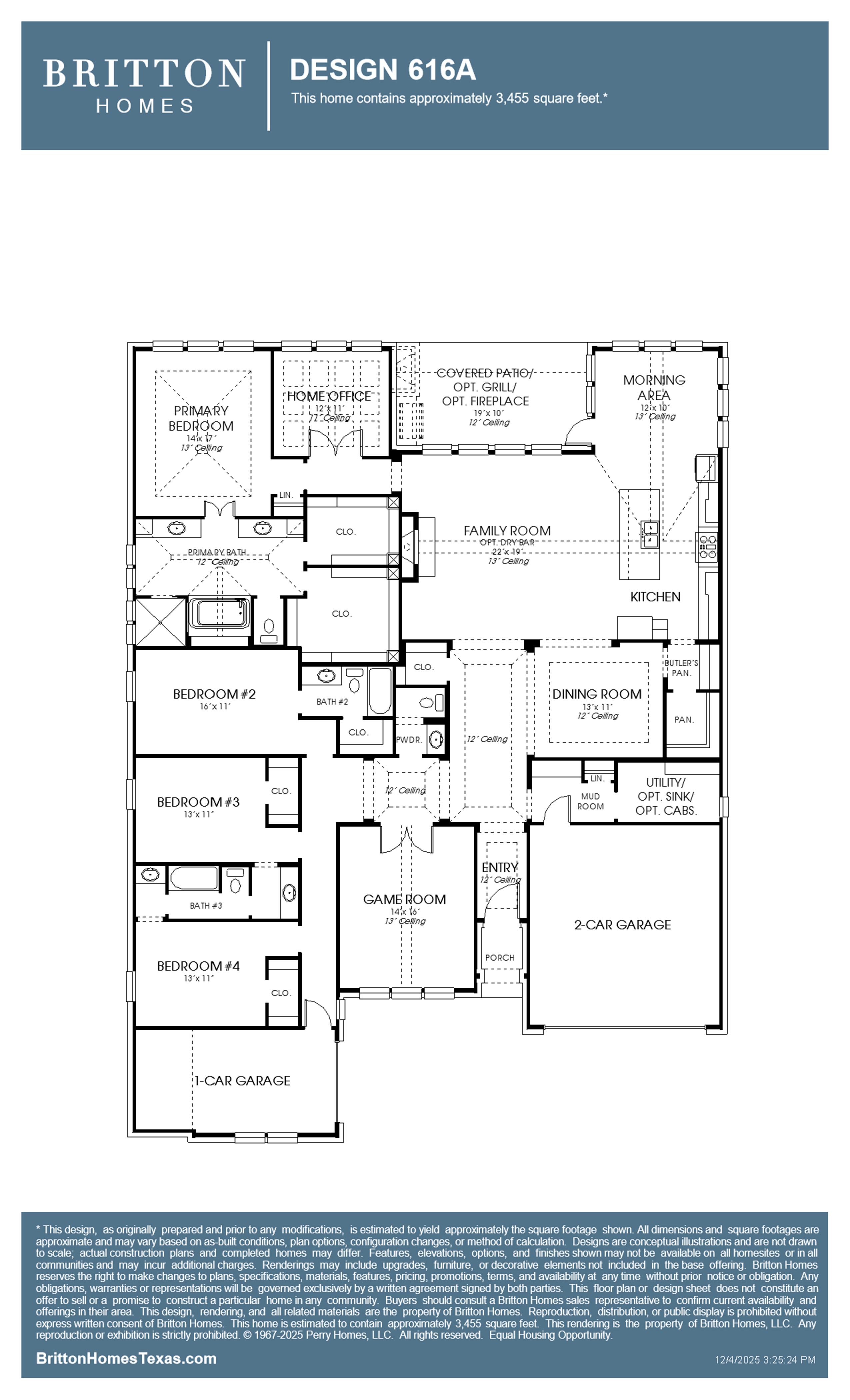Builder reserves the right to make changes in the designs and specifications, and to substitute material of similar quality. Prices, terms, promotions, plans, dimensions, features, options, amenities, elevations, designs, square footages, specifications, materials and availability of homes or communities are subject to change without notice or obligation. All obligations will be governed by a written contract. This website does not constitute a commitment to build a particular design or home in any given community. Some designs, options, and/ or elevations may not be available on certain homesites or in a particular community and may require additional charges. Please check with Perry Homes to verify current offerings in the communities you are considering.